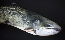 Schitterende print en tekening laten veel denken met een echte meerval te maken te hebben.