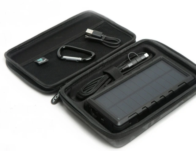 Deze nieuwe powerbank van wolf heeft een solar oplaadpanneel, waardoor hij zichzelf de hele dag door oplaad.